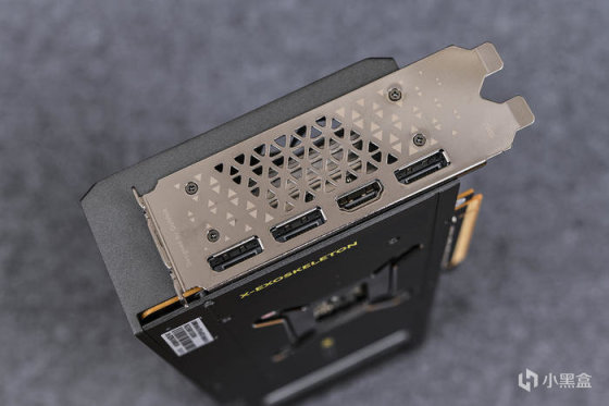 输出接口为 A770 标准的 3 个 DP 2.0 、 1 个 HDMI 2.0 ,挡板镂空镀镍处理。