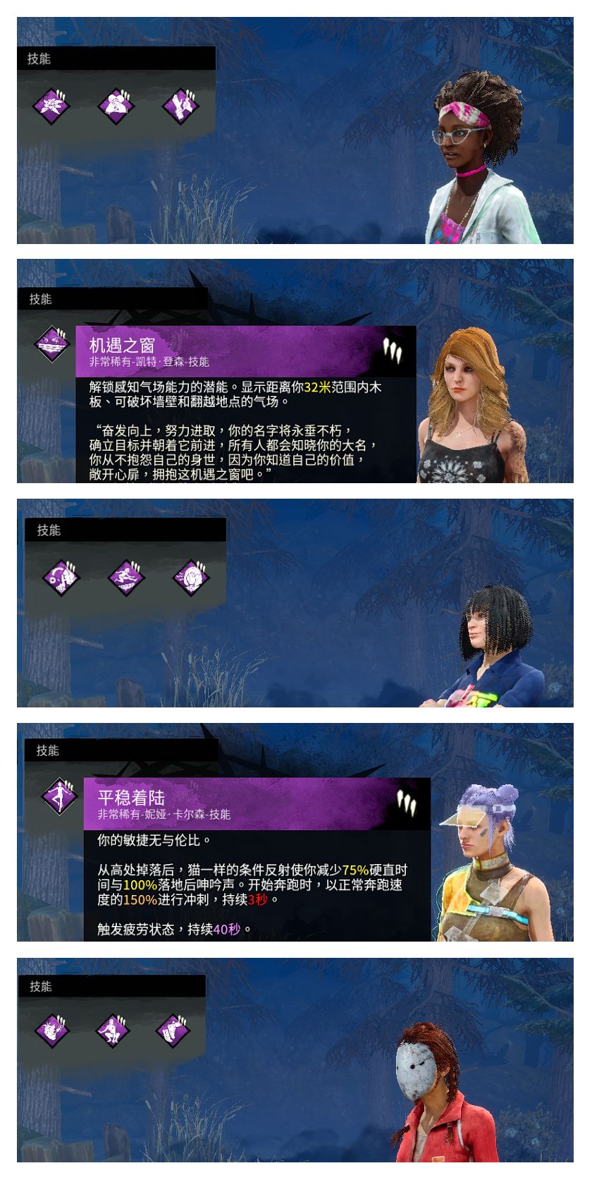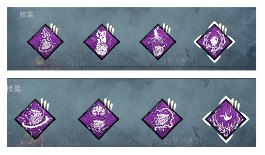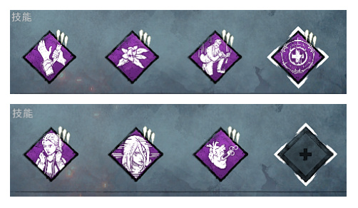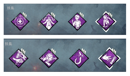 (藝術家)的天災,小丑(跟凱特一個DLC)的心驚肉跳,魔王(怪奇物語)的鎖疲勞,剩一個格子可以根據自己喜好,不過前期缺血點可以先用小丑的封窗或者鳥姐的冷酷之擁替代,雖然8週年測試服控機套又要被削,但是應該短期內也找不到合適的下位替代,還是優先推薦解鎖我說的這一套。