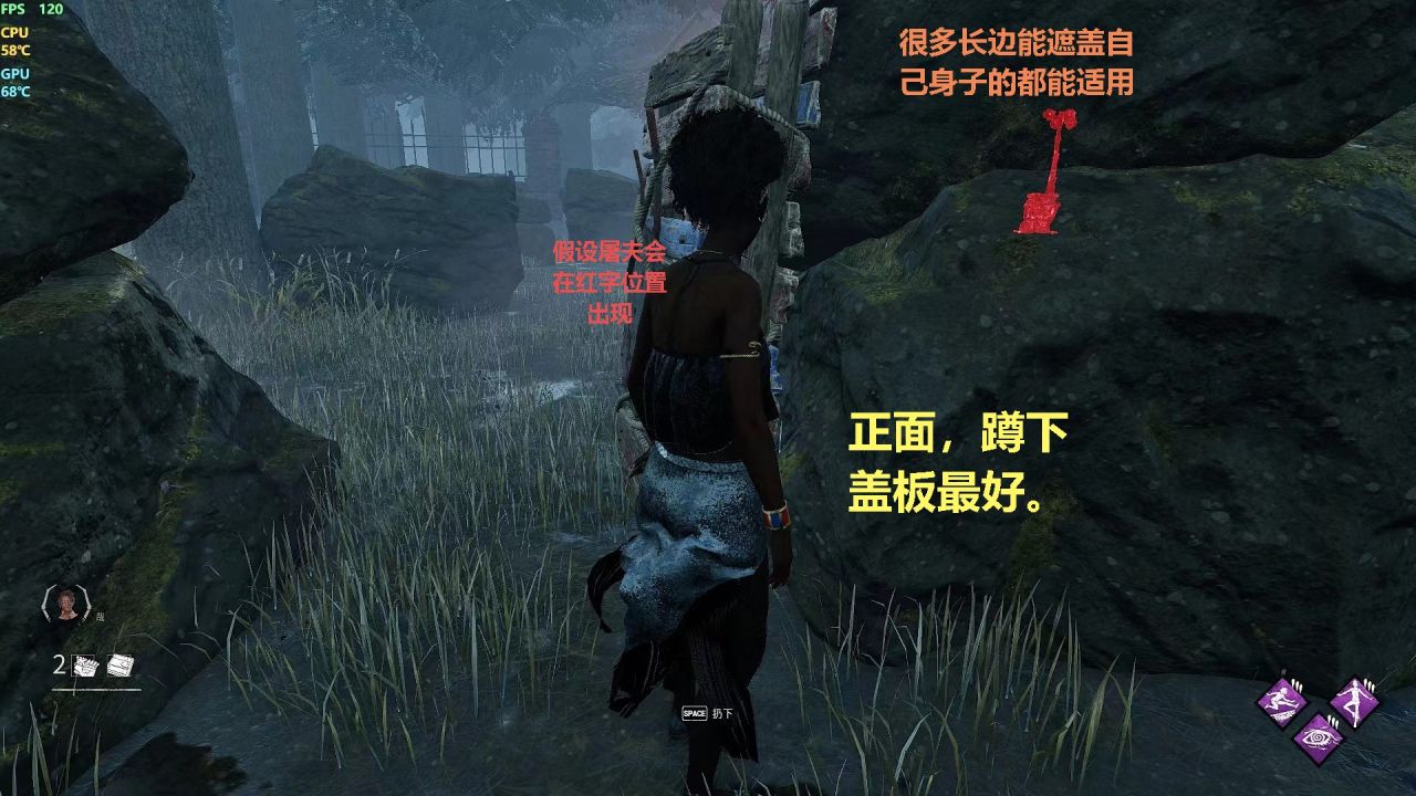 4. 隱藏分越高的局,鋼筋越容易被防,沒有地形的地方,沒有板子窗戶玩的地方,或者你的隊友已經剛過了,屠夫有心理準備,這樣的情況下很難再隨意使用鋼筋。