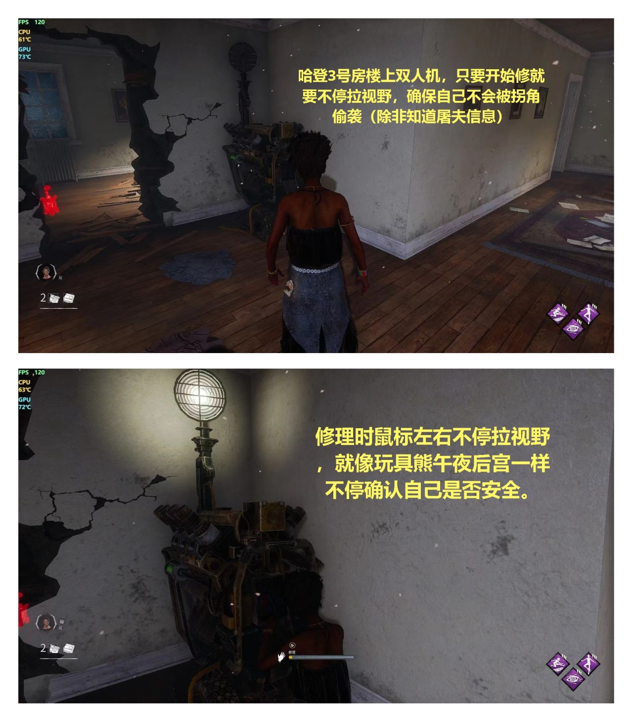 上面也說了,修機時一定要保證自己安全,鎖疲勞有心跳就老老實實鬆手,殘血加上鎖疲勞就不要浪,確保自己的疲勞能夠幫助自己逃生的情況下再修理。