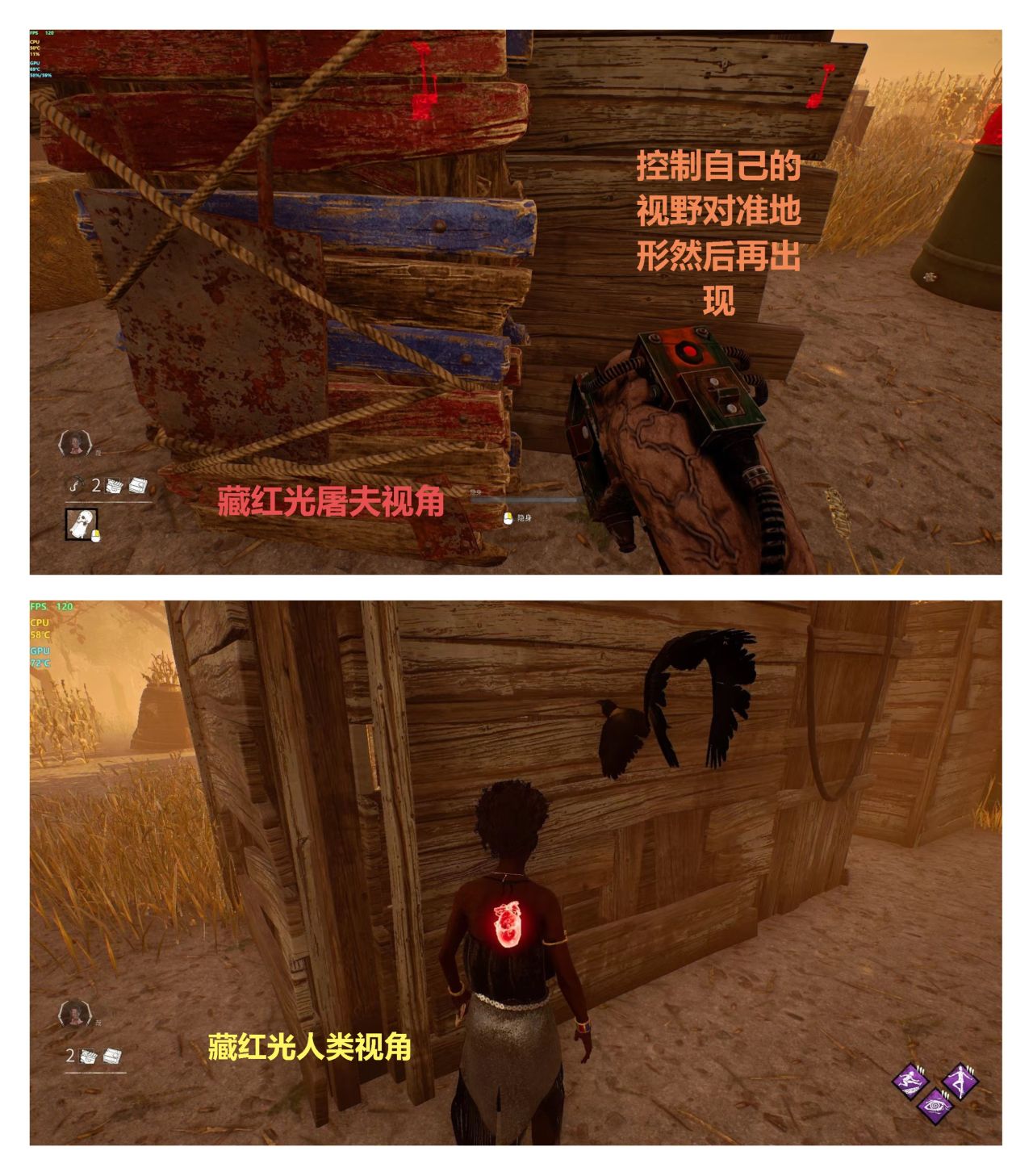 儘量保證自己的鋼筋在互動區域觸發,板下,窗前,或者互動完之後立馬接鋼筋:第二種就是卡視野鋼筋,但是除了在互動區域博弈鋼筋之外,剩下的鋼筋觸發點都需要提前摸一摸屠夫水平和打法。