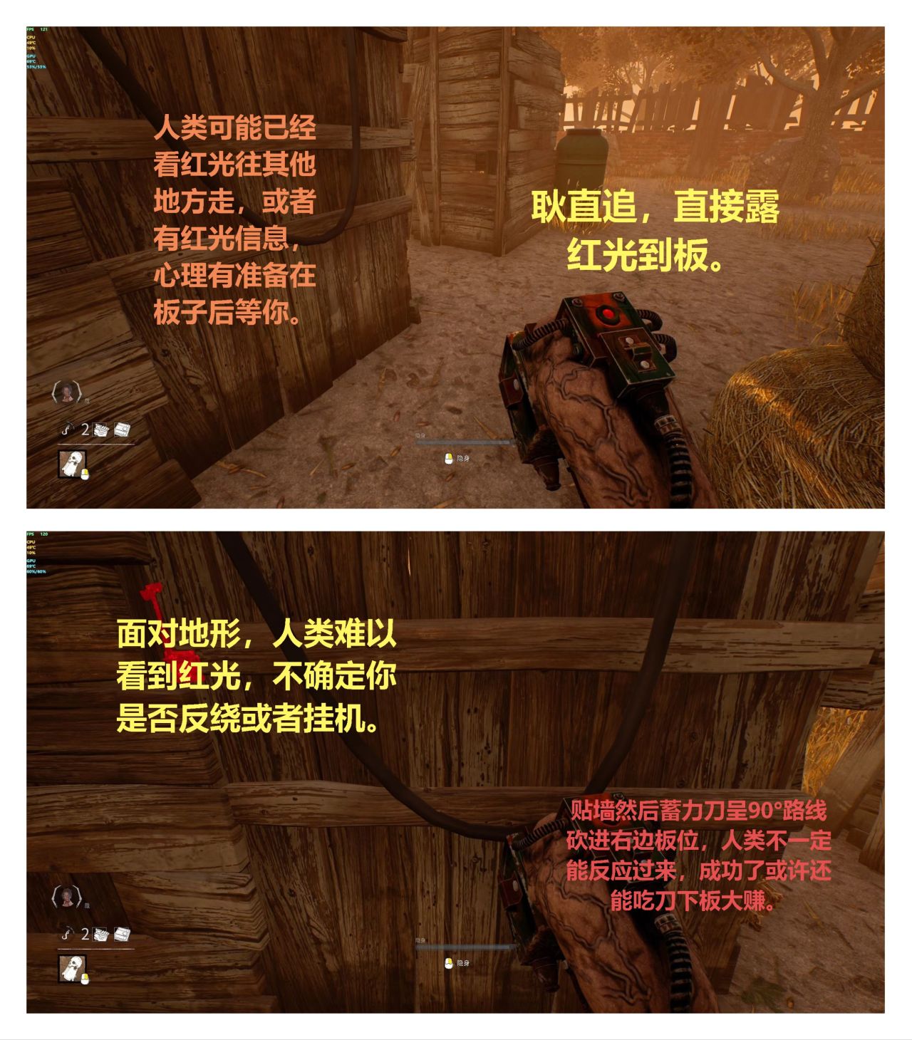 17. 如何提升三角頭跟異形右鍵的成功率:在人類觸發互動的情況下攻擊成功率會更高,如果沒把握就右鍵壓迫加左鍵。