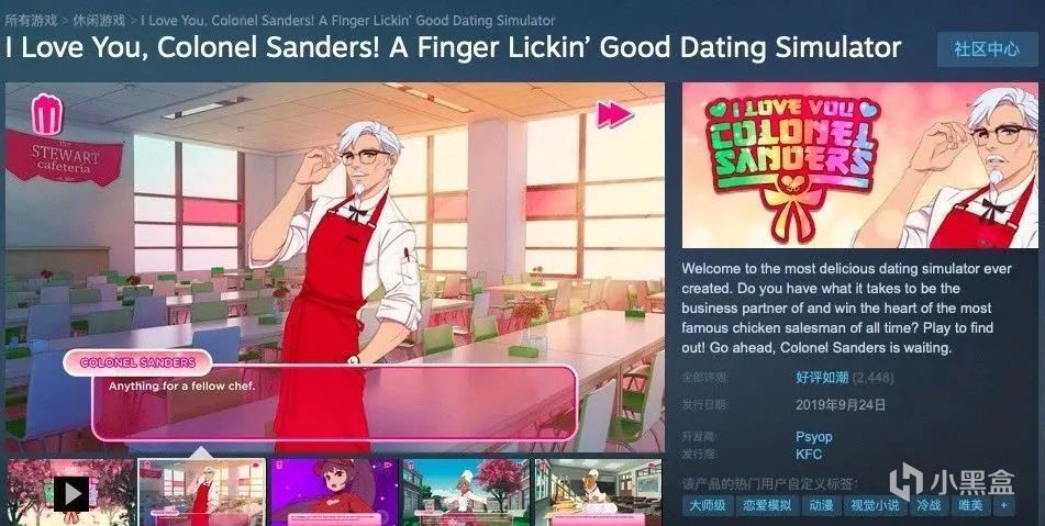不過,這並不是KFC在遊戲界的唯一波瀾:你還可以在另一款上架Steam的遊戲中,與山德士上校進行約會。