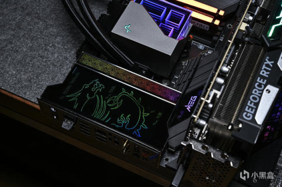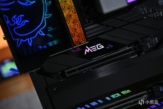 位于第一根M.2 散热片上的 MEG RGB 灯效。