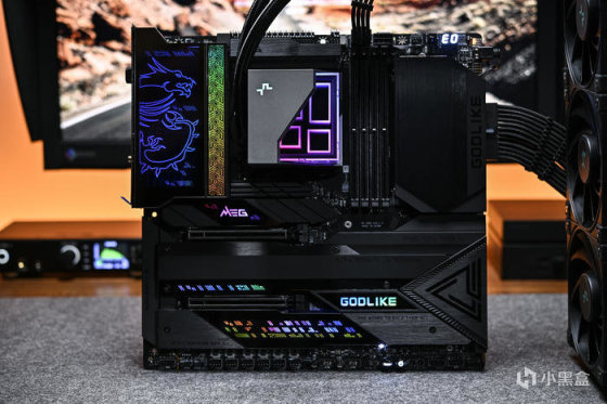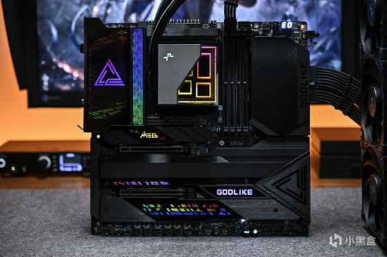 主板整体灯效展示。MEG Z790 GODLIKE具有错觉灯光效果,采用独家的多重结构,允许GODLIKE在一个区域显示双重图案。