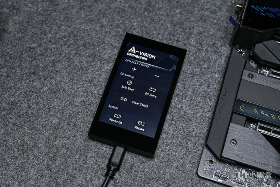 附赠的 M-VISION 全彩电容触控屏,4.5英寸,结合了硬件监控和调试功能,并可用来进行系统操作和各种自定义,让玩家获得更丰富的体验。