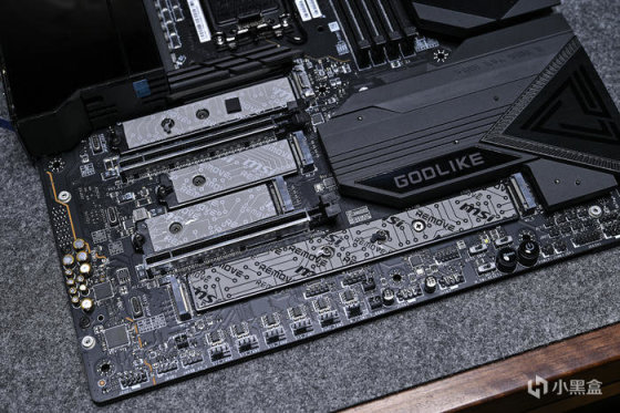 内存右侧为双 M.2 拓展位,表面一整块厚实的拉丝铝合金散热装甲覆盖,拉丝纹和科技纹理的结合,边缘印有 GOODLIKE 标识。