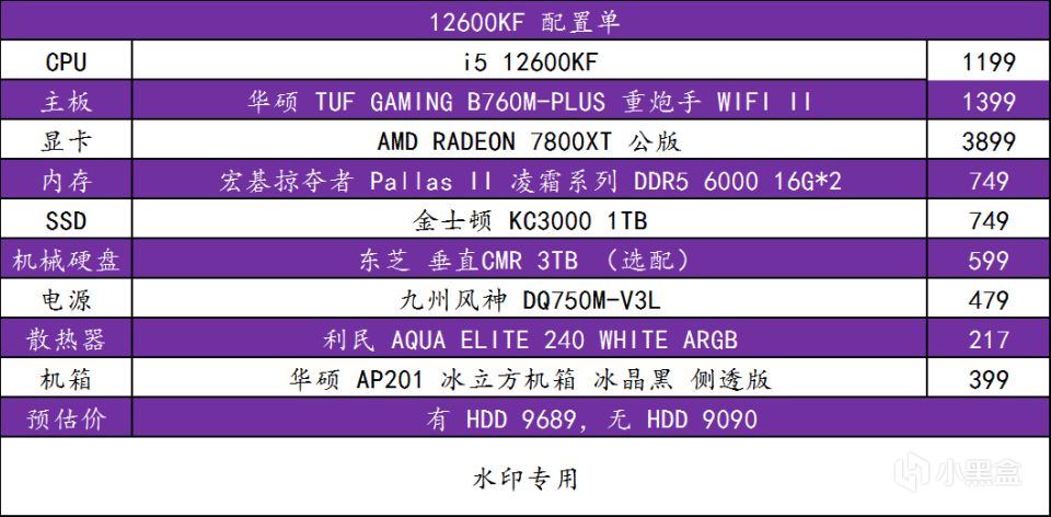 ▲ 整套配置主打一个白色,主要针对的游戏分辨率为 1080P 分辨率,整机的预算主要倾斜在 CPU、主板、显卡上,选用品质与售后都出色的产品可以让电脑的使用寿命更长。