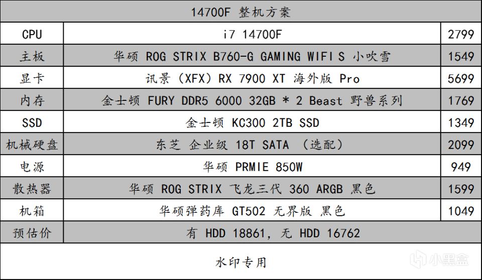 配置单的价格是 2024 年 5 月 10 日查询到的价格,在 5 月 20 日 / 5 月 31 日的价格会更低,各位如果感兴趣可以先加入购物车,到时候等待特价即可。