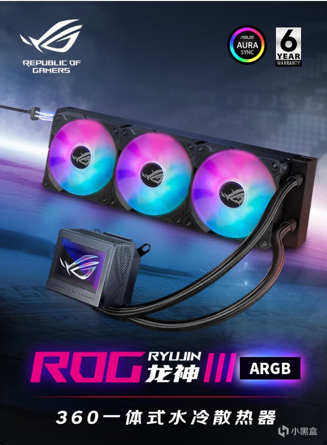 ▲ 华硕这款 ROG STRIX 飞龙 III 这款水冷散热器是市面上极少数兼具出色散热、静音与外观的水冷散热器。它的风扇支持智慧启停技术,搭配上定制的高性能静音风扇,可以实现很低的散热噪音。水泵采用 Asetek 7 代升级版方案,支持低负载下转速可下调,兼顾日常使用与噪声控制。360°可旋转的磁吸式冷头盖让 ROG STRIX 的 logo 永远朝向正确方向,风扇与冷头支持 ARUA SYNC 神光同步,可以呈现出非常出色的流光溢彩。产品有超长的 6 年质保,可以安心使用。