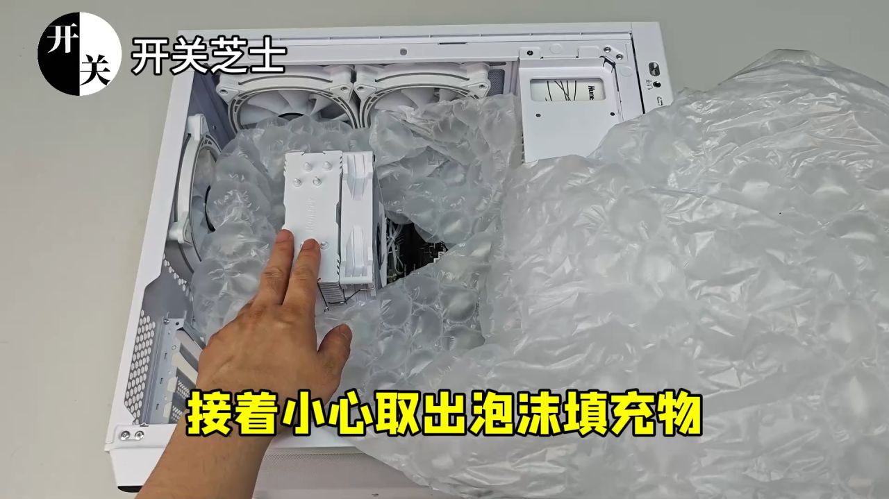 接着小心取出泡沫填充物,防止拉傷散熱器等硬件: