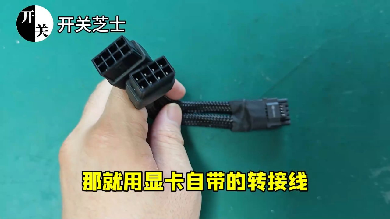 如果電源沒有16孔供電線,那就用顯卡自帶的轉接線,按照前面的方式轉接一下即可: