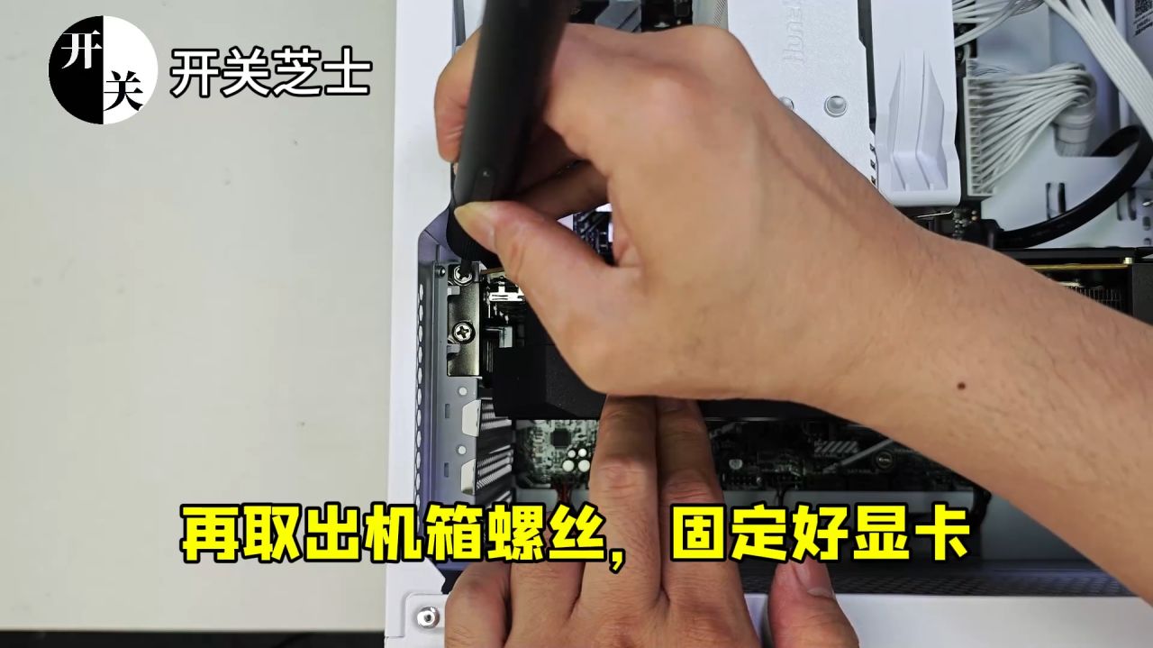 再取出機箱螺絲,固定好顯卡: