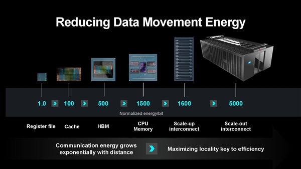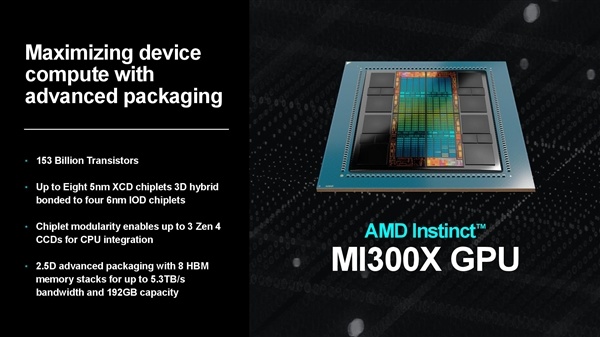 她指出,Instinct MI300X就是高能效的典型代表,包含1530亿个晶体管,分为12颗小芯片、24颗共192GB HBM3内存芯片。