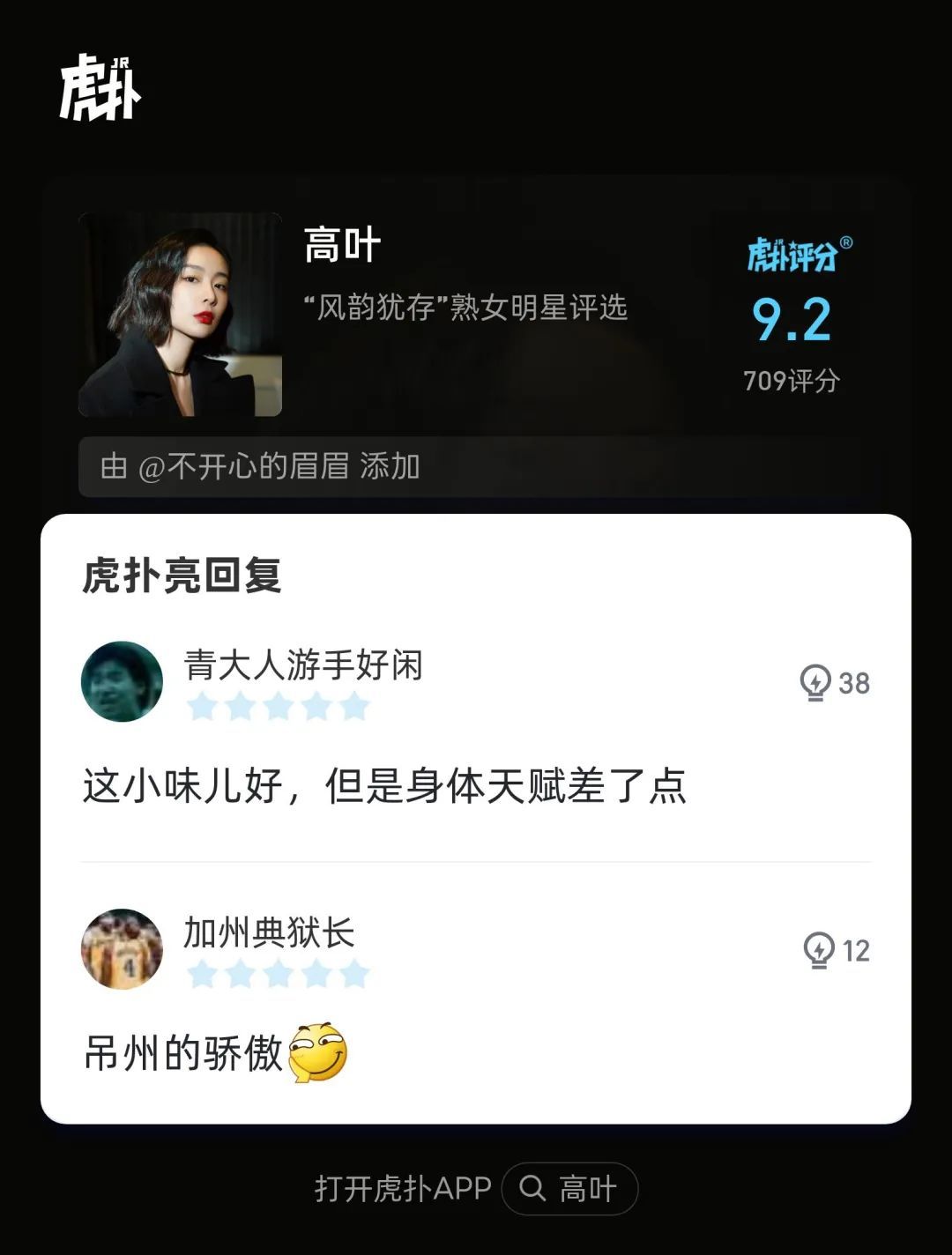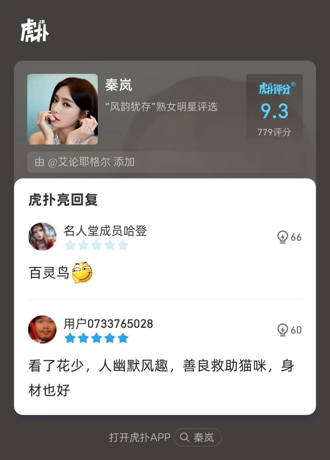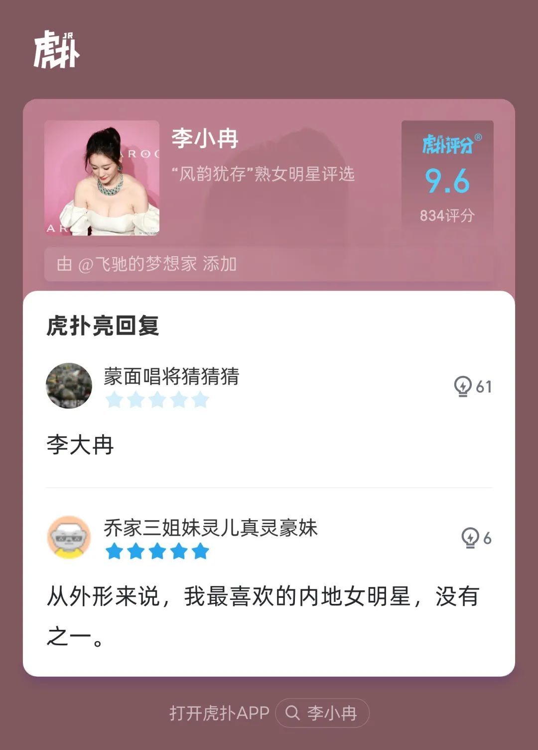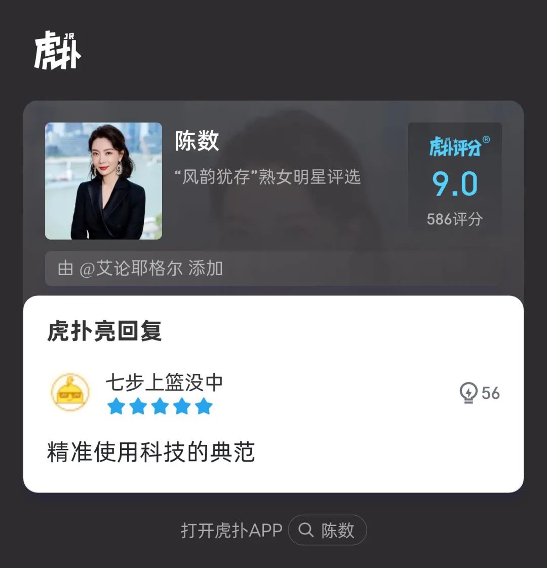 虎扑官方评语:“她52岁了!怎么会有人年龄和美丽成正比增长的!”