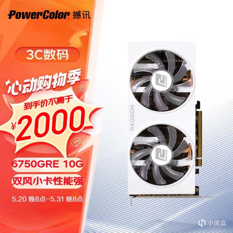 显卡方面,要数目前最火、最受欢迎的游戏显卡莫过于RX 6750 GRE系列,如果预算比较有限,可以看看撼讯这款RX 6750 GRE 竞技 10GB白色版本,它是双90mm风扇设计,支持智能启停,长度只有228mm兼容性绝佳,目前参加满减活动,加入购物车优惠价格仅为1989元,几乎是最便宜的RX 6750 GRE 10GB显卡了,而且它还是纯白款。