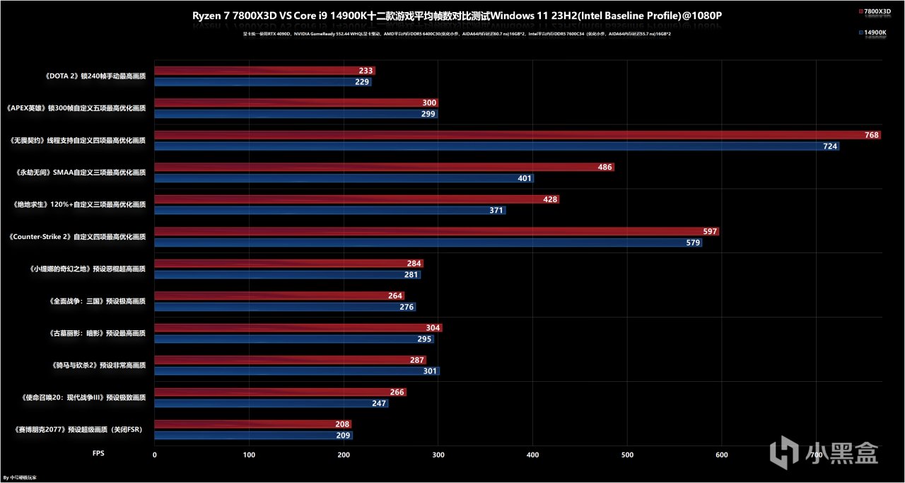 锐龙7 7800X3D VS 酷睿i9 14900K十二款游戏平均帧数对比