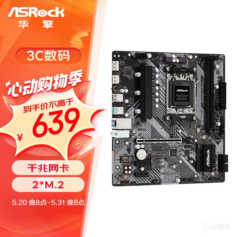 锐龙5 7500F和锐龙7 7800X3D,想配极致性价比主板,个人建议可看看华擎这款B650M-H/M.2+,它拥有6+1+1相和Dr.MOS 50A VCore供电,用料相比同价位的A620好不少,从扩展性看,两组M.2插槽能满足主流需求,甚至有一组还支持GEN 5X4,妖板真不是吹得!639元的促销价格也是相当劲爆了。
