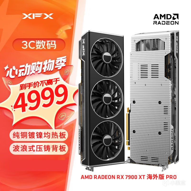 目前4K显示器价格也便宜,性价高的4K游戏显卡就推荐RX 7900 XT,在电商平台看到讯景这款RX 7900 XT海外版Pro还不错,三枚100mm风扇加持,散热结构还采用了镀镍真空均热板+镀镍热管,整体用料豪华,618价格也杀到了4999元,要知道,RX 7900 XT性能可是在RTX 4070 Ti之上,部分游戏甚至可以和RTX 4080 SUPER扳一扳手腕。