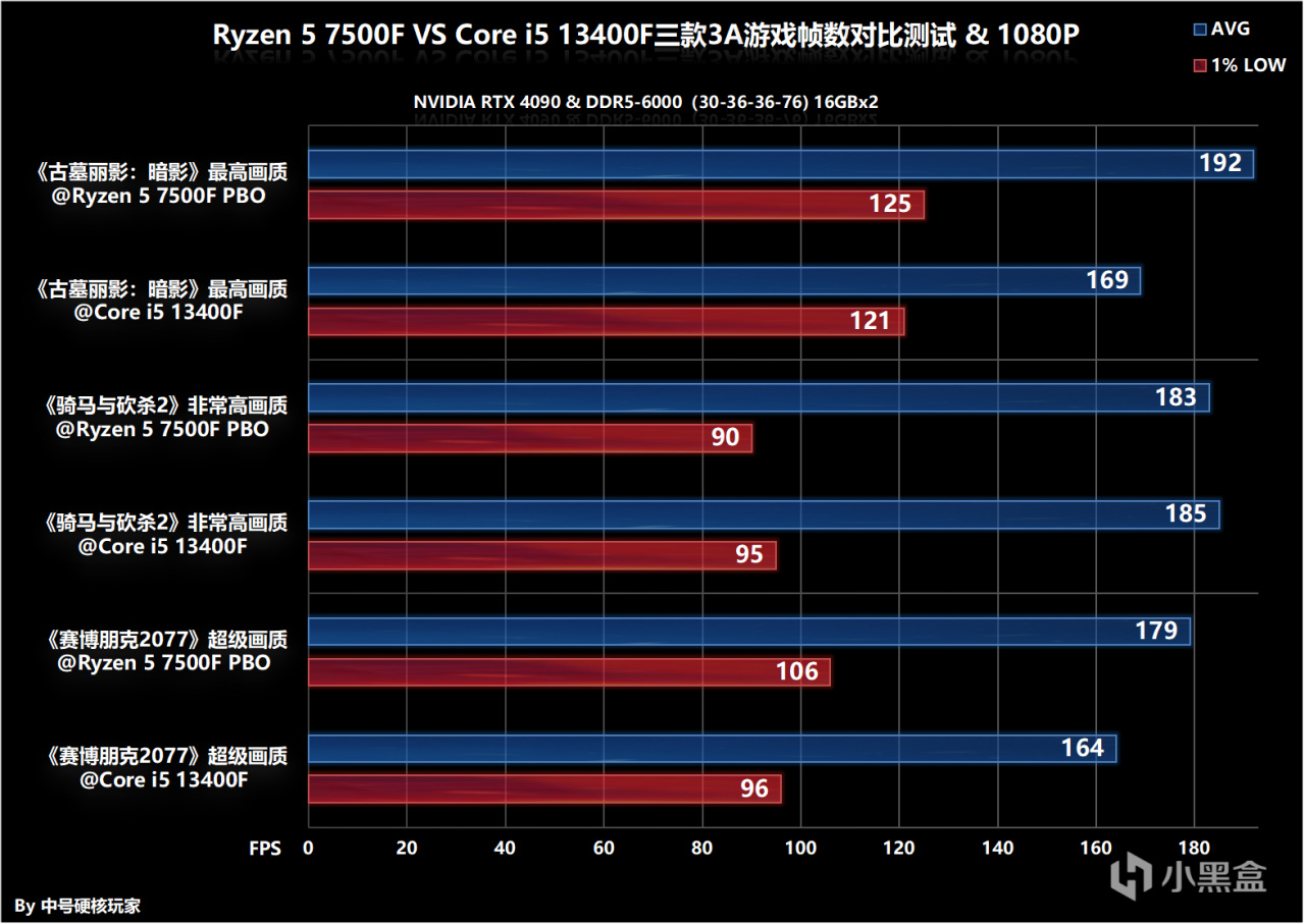 锐龙5 7500F VS 酷睿i5 13400F三款3A单机游戏帧数对比