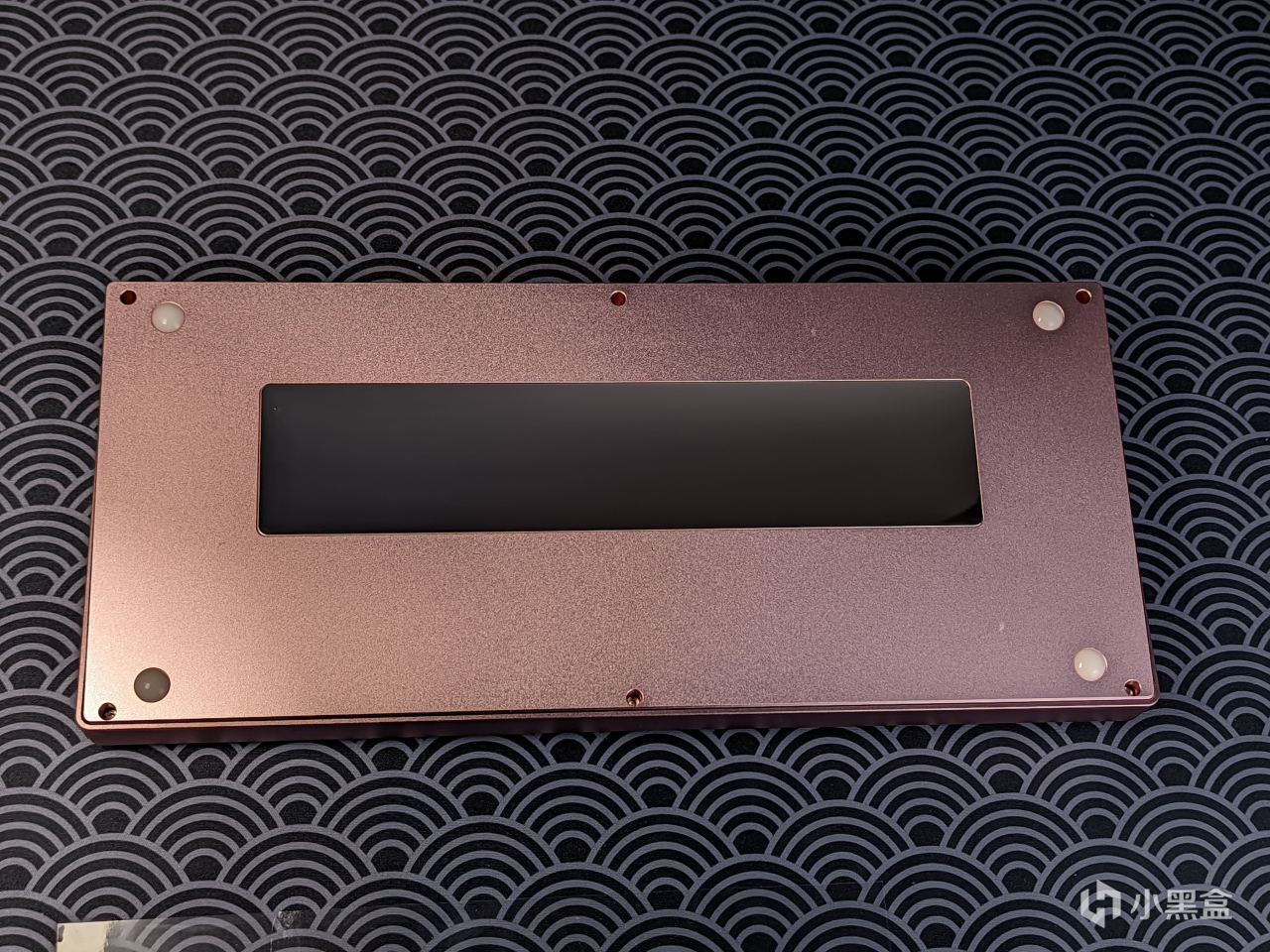 翻到背面,第一眼就会被这块镜面铭牌吸引住目光,是的,这个价格的套件终于有镜面铭牌了,当然其本身是带有保护膜的,我这边只是提前撕下了,底部有着六颗螺丝,全部取下后可以拆开键盘,我因为上次已经拆过了,这边就不展示了,如果感兴趣可以去翻我上一篇酒红套件的部分,比较可惜的是其本身的前高有点低,且没有设置脚撑,所以使用起来会有些不适应,不过这点可以自己加贴脚撑解决。