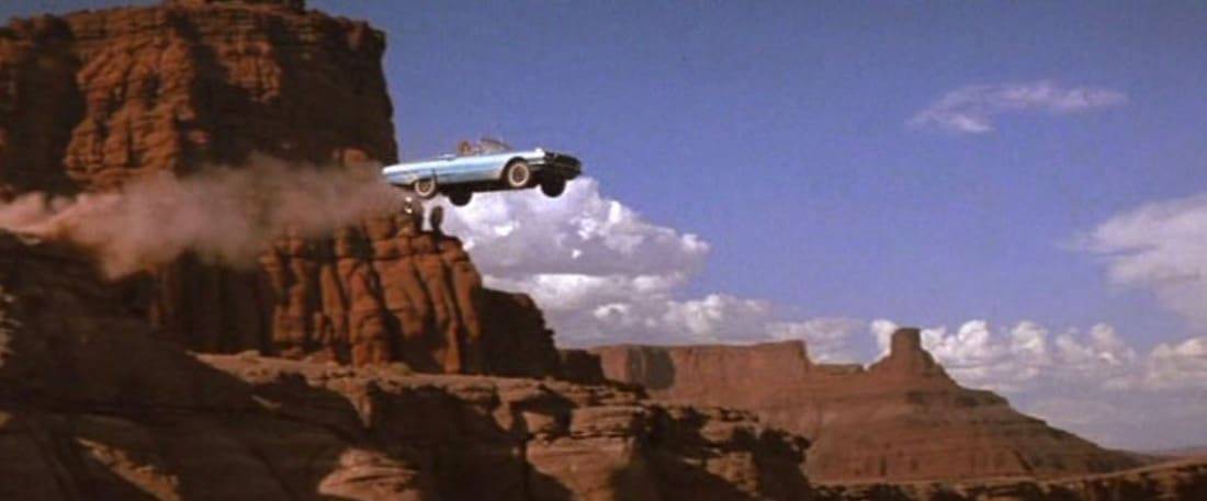 在遊戲時間19:00的乞力耶德山區一處山崖上就會看到幾輛警車追逐這一輛兩個女性NPC駕駛的敞篷車,在短暫猶豫後,敞篷車加速衝向軒崖並最終車毀人亡,復刻了的電影結尾。