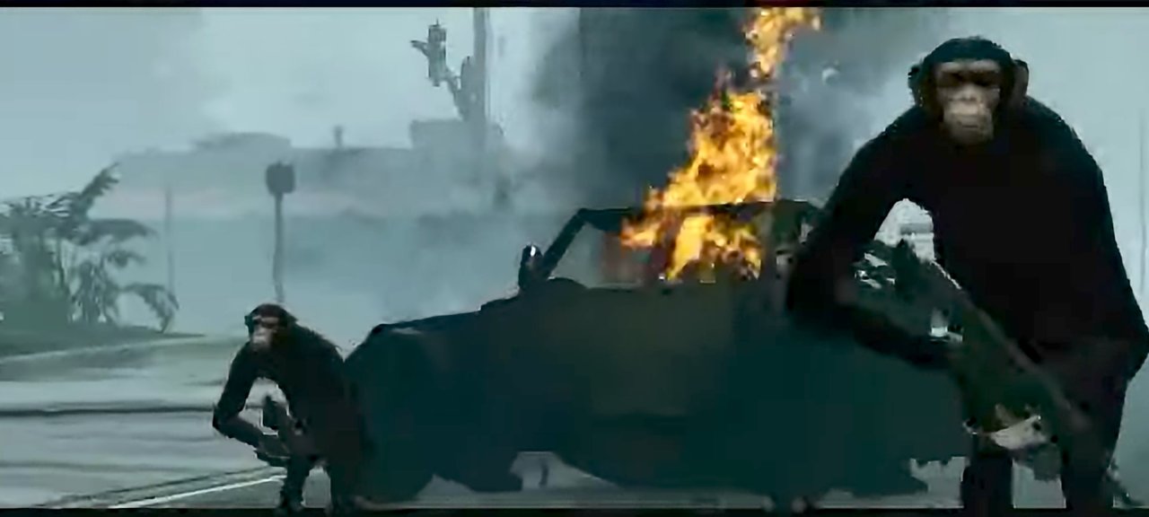 不過預告片比較無厘頭,一批被用於提取DNA的猿猴從實驗室裏逃出,軍方也出動進行干預。武裝直升機和士兵追趕猿猴竟然是爲了“幹他一炮”(非物理),提取DNA變成注入了屬於是,最終導致挑起全面人猿戰爭,這個“猩求撅起”就非常的Rockstar。