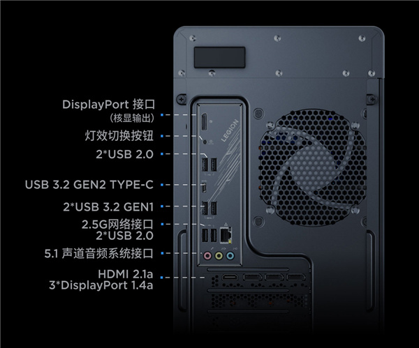 显卡可选三风扇的RTX 4070 Ti SUPER 16GB,或者双风扇的RTX 4070 SUPER 12GB、RTX 4060 Ti 8GB,还有单风扇的RTX 4060 8GB,都是联想自家的卡,CNC钻切高亮边框,HALO ARGB幻夜星门设计。