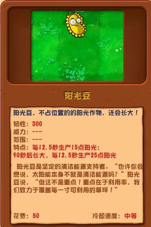 不占用位置产阳光,成长后提供更多阳光,缺点是不能开局放,冷却时间长,同时要担心植物过多时不要铲错哦
