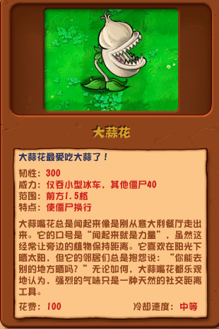 经济特区指定前排,开局放一排向日葵靠大蒜花顶住,同时能秒杀小型冰车,缺点是稍不注意可能会使其他路的压力过大