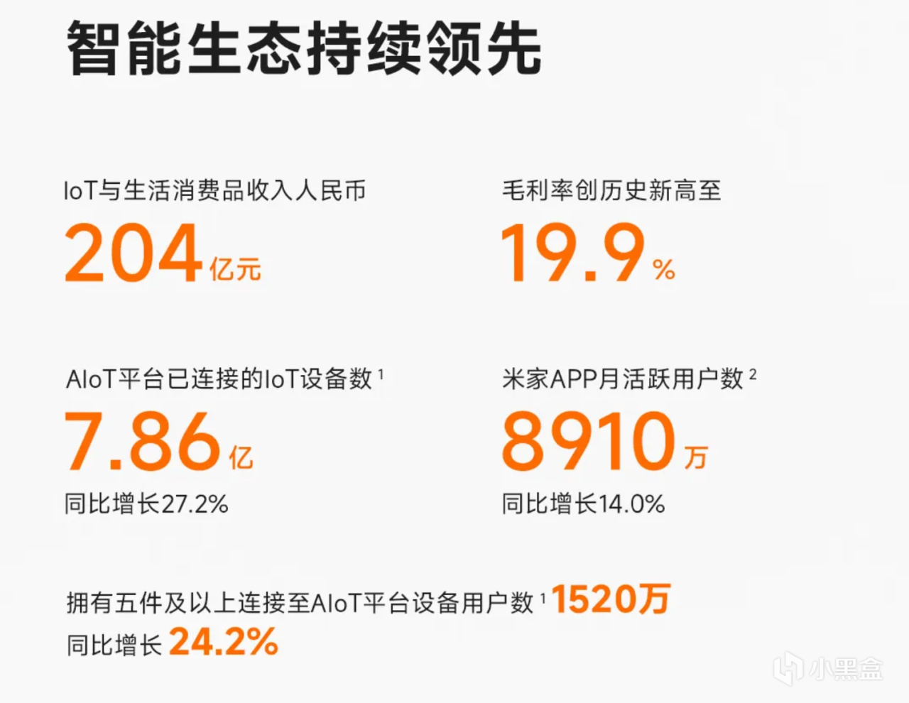 其实对于整个小米集团而言,手机更多地充当流量的入口,利润的重要来源是米家生态和互联网服务。第一季度米家生态收入204亿元,毛利高达19.9%;互联网业务收入80亿,毛利占到74.2%,两者的毛利总和接近100亿。