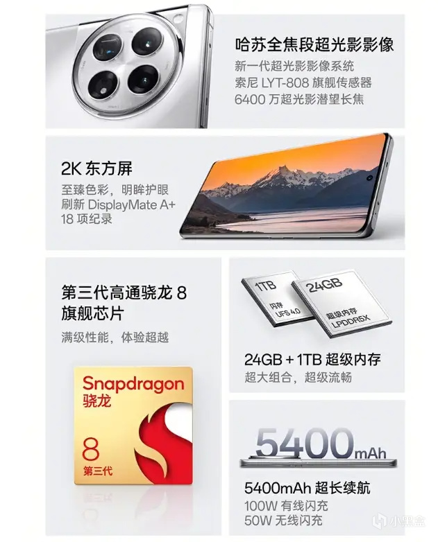 影像方面,该机装备了豪华的徕卡三摄系统,三颗均为5000万像素镜头,包括主摄、超广角及浮动长焦镜头,特别是主摄支持1024级可变光圈,为摄影爱好者提供了更多创意空间。内置4880mAh大容量电池,配合120W有线快充和50W无线快充技术。