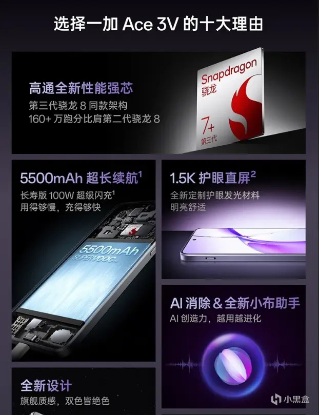 续航能力方面,一加 Ace3内置了5500mAh电池,并配备了长寿版100W闪充。手机还支持SUPERVOOCS全链路电源管理芯片和智慧算法优化,兼顾了续航能力、充电速度和电池寿命。