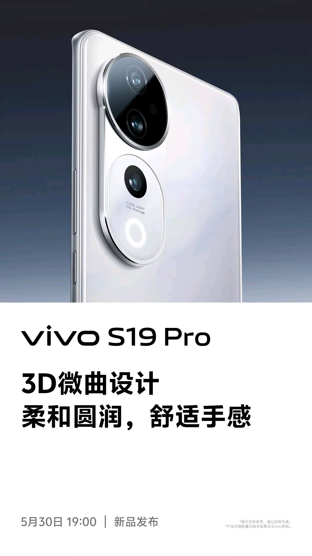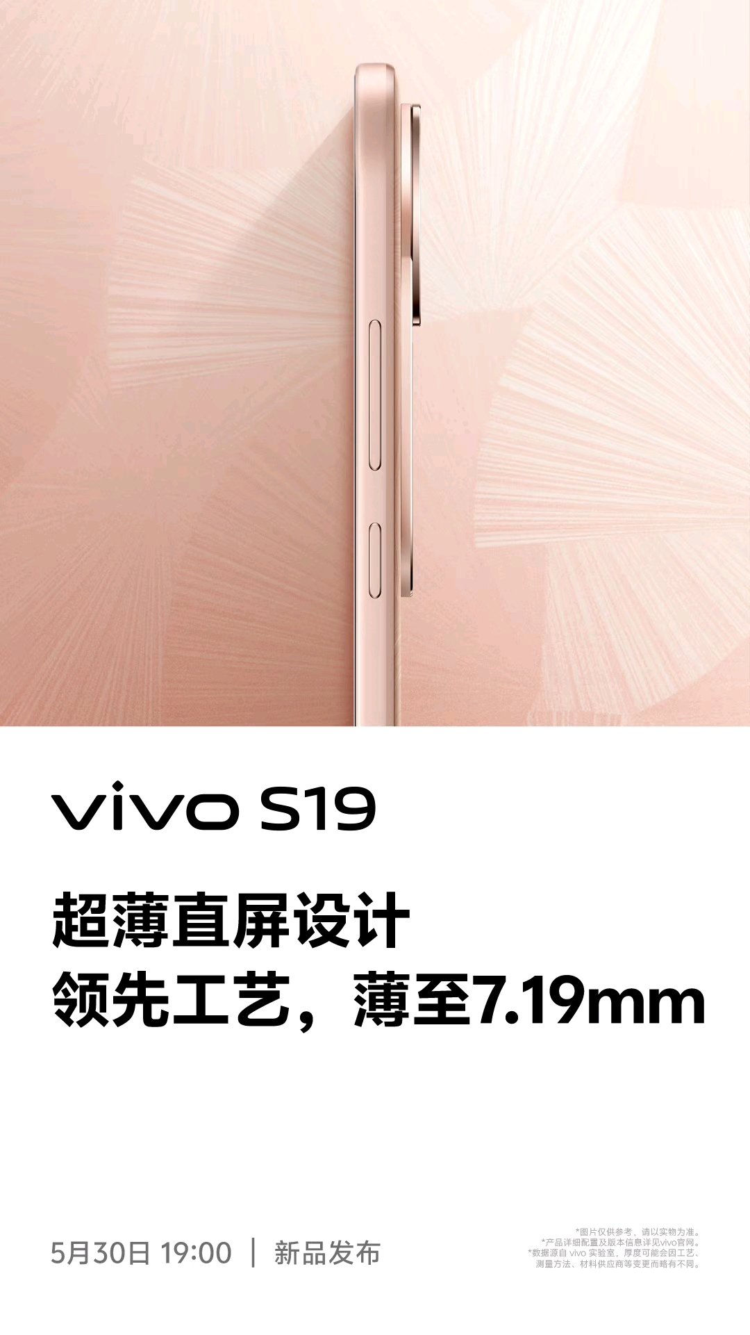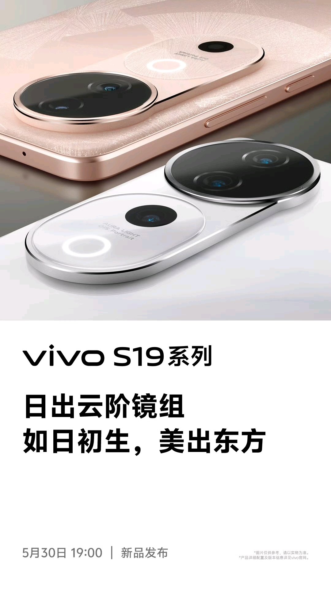 ——据了解vivo 此前官宣 S19 系列手机将于 5 月 30 日 19:00 发布,产品口号为“人像之光,美出东方”。