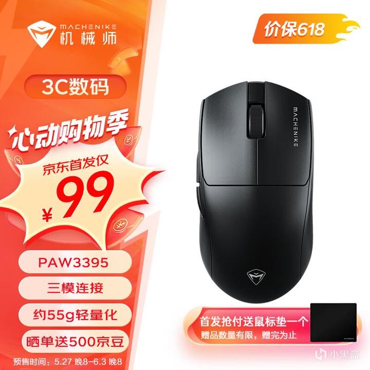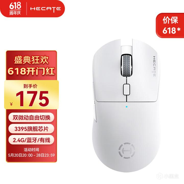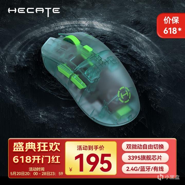 比较适合中手、小手抓握使用。前宽后窄的对称式模具,配置很高,3395传感器,华诺蓝透粉点微动,55g轻量化。由于性价比很高也同样经常性缺货,碰到有货合适直接买即可。