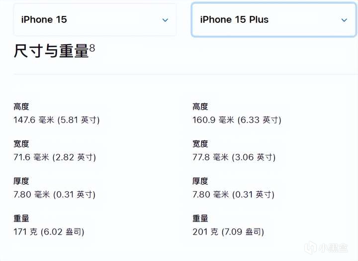 但在機身重量的差異是明顯的,iPhone15的重量只有171g,非常的輕巧,結合6.1的小尺寸,握持在手裏更加順手。而iPhone15 plus重量則是201g,屬於目前主流的手機重量。