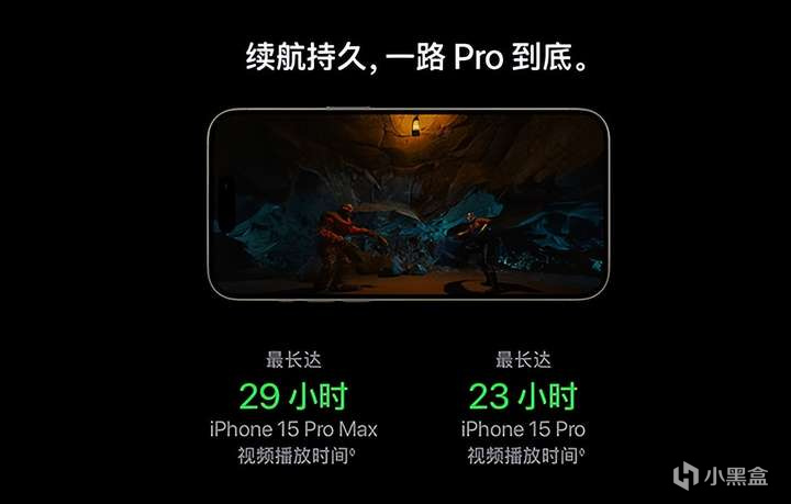 這兩款的主要差異一樣也是屏幕尺寸大小導致的差異,其中影響比較明顯的是機身重量和電池續航。iPhone15 Pro的重量只有187g,這個重量還是很不錯的,而iPhone15 Pro Max的重量則到了221g,雖然對比上一代輕了不少,但相對來說還是比較重一點的。