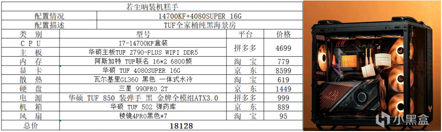 1、本期搭配最后附上很多盒友要求的华硕TUF全家桶以及ROG全家桶搭配,仅供借鉴;