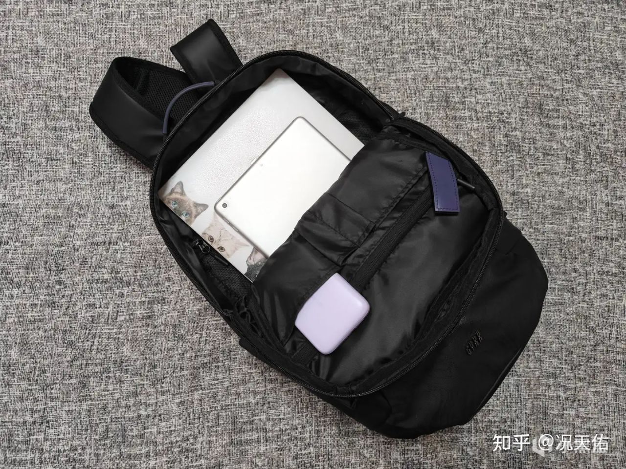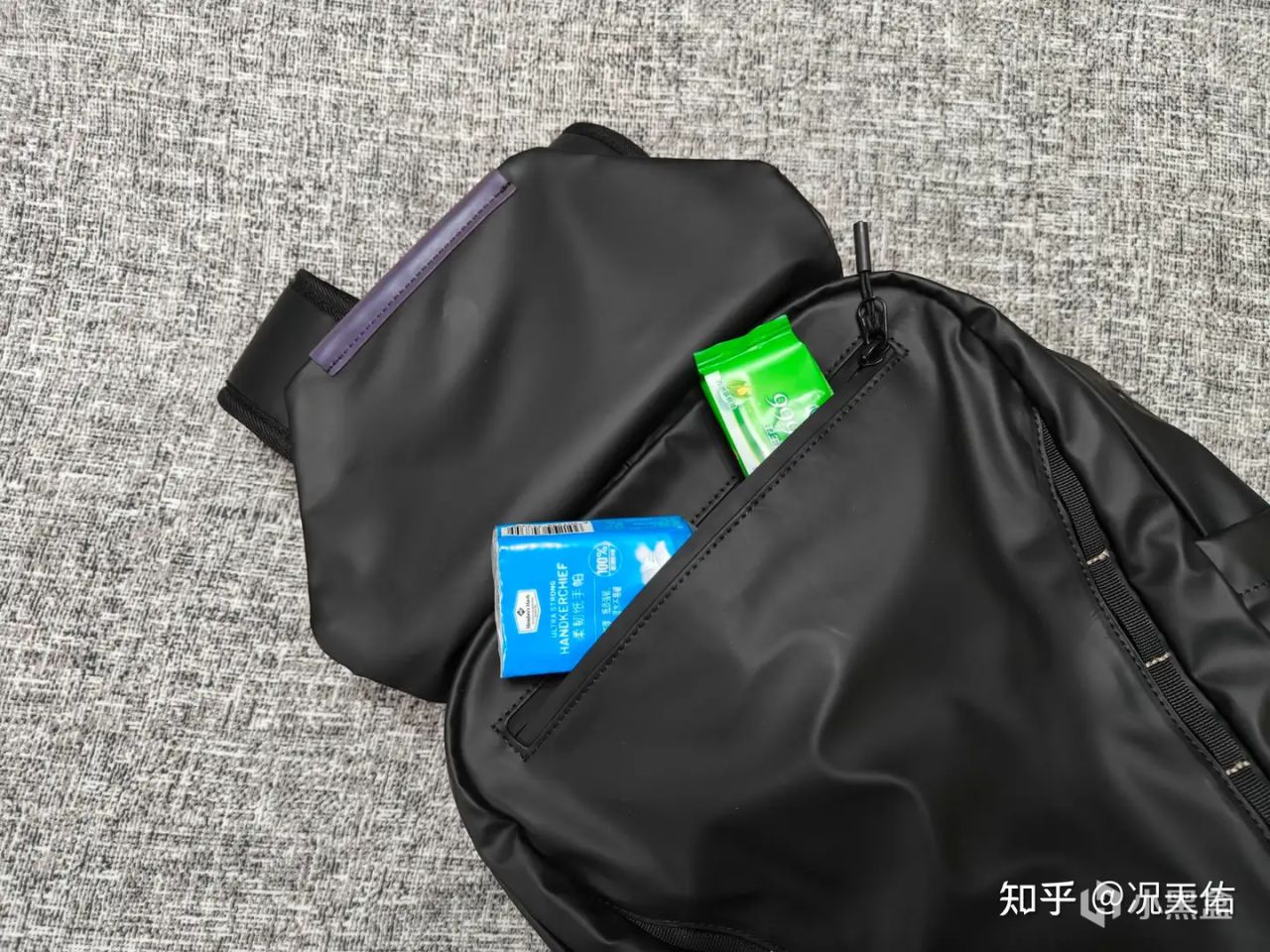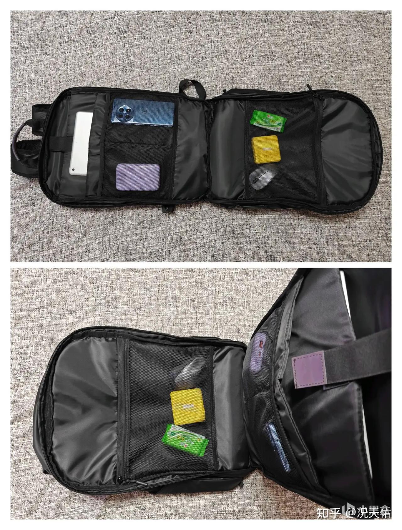 打开背包的盖头,竟然还有一个实用的收纳袋,无论是纸巾、湿巾等日常小物品,还是出差时的报销凭证等重要文件,都能轻松收纳其中。这样的设计不仅让背包内部更加整洁有序,也为您的出行提供了极大的便利。
