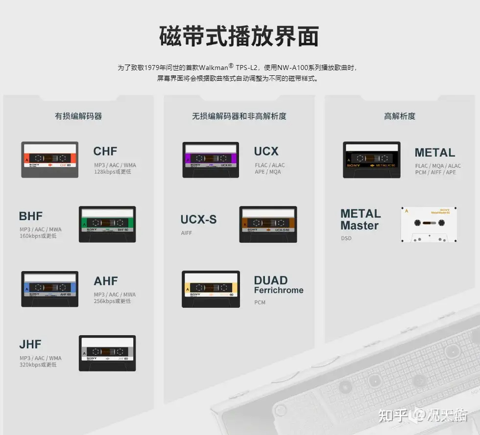 作为SONY Walkman40周年纪念的诚意之作,索尼NW-A105不仅具备入门级别的性价比,更加适合那些想要在简单的操作中获得高质量音乐享受的用户。机身小巧,轻松便携,却拥有着出色的音质表现。而那令人怀念的磁带式播放界面,则将用户带回到充满回忆的年代。此外,索尼NW-A105的升级版还新增了对于无线蓝牙的支持,进一步增强了其便携性和实用性。