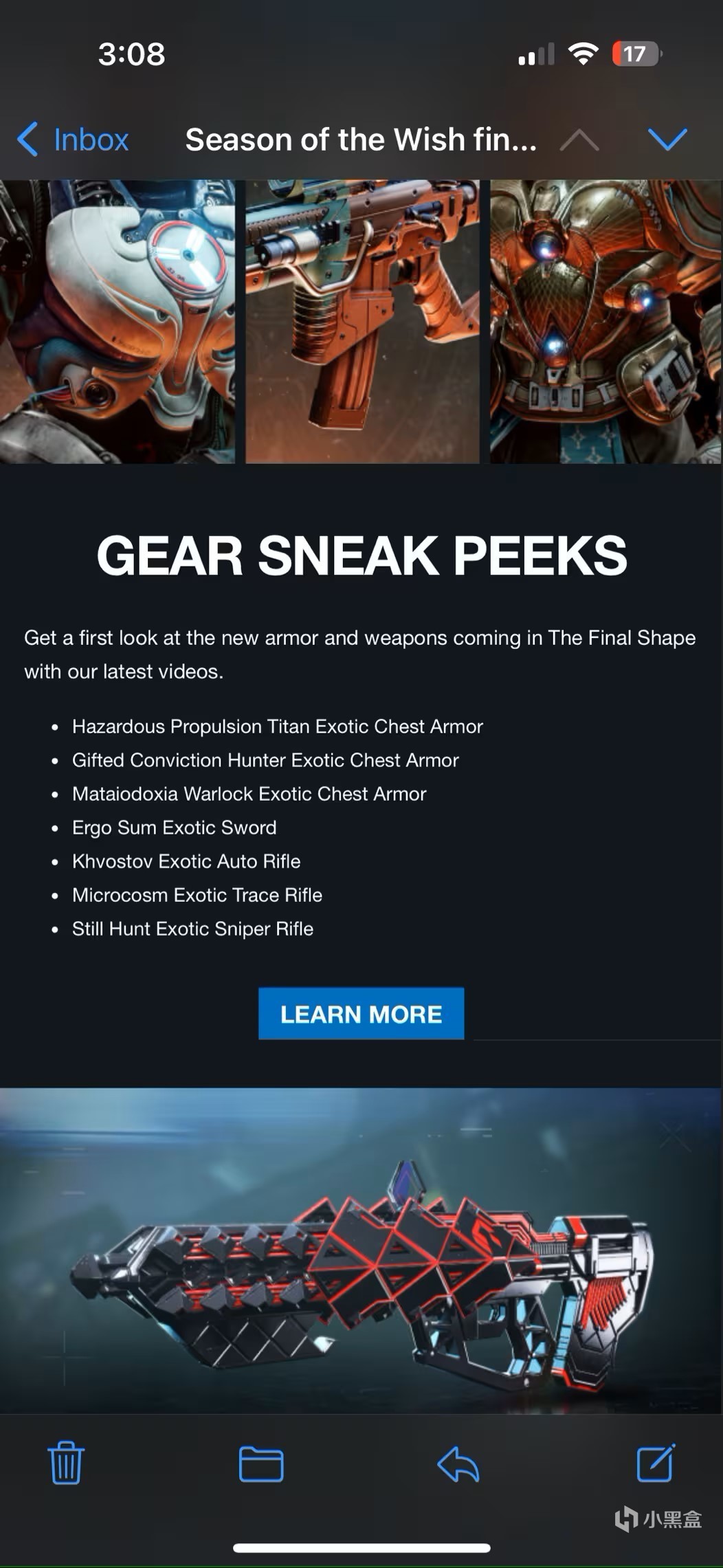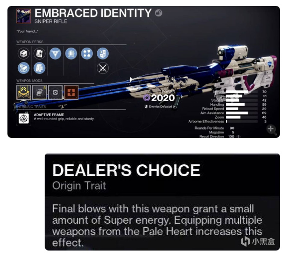 首先是這次的重量級選手,綠彈藥烈日傷害狙擊步槍“隱祕追獵”,特效“凱德的報應”:拾取光球或者精準命中可以爲武器專屬超能充能(切換武器可以保留!),武器超能全滿後長按R啓動黃金槍!特殊perk“神槍手”:此武器被動獲得更高的AA、瞄準速度和退縮抗性,啓動黃金槍時可以進一步提升上述屬性。特殊perk2“黃金彈藥”:此武器啓動黃金槍時當前彈匣獲得額外彈藥(編者注:也就是說黃金槍本身是不消耗武器自身子彈而是額外的彈藥)。