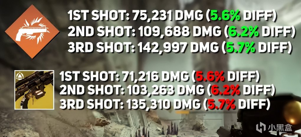 使用此武器爆頭6次即可充滿超能(編者注:該武器正常模式下一個彈匣6發子彈),當不裝備金槍頭時長按R會變爲3發黃金槍,當裝備金槍頭時長按R會變爲單發黃金槍。可以喫到激湧、煥光等buff,在蒼白之心大世界不壓光時,2層激湧下帶金槍頭一槍打出了56萬傷害……在-15光專家級日落(編者注:即目前的傳說難度),煥光+金槍頭一槍打出了23萬傷害,基本秒殺勇士!