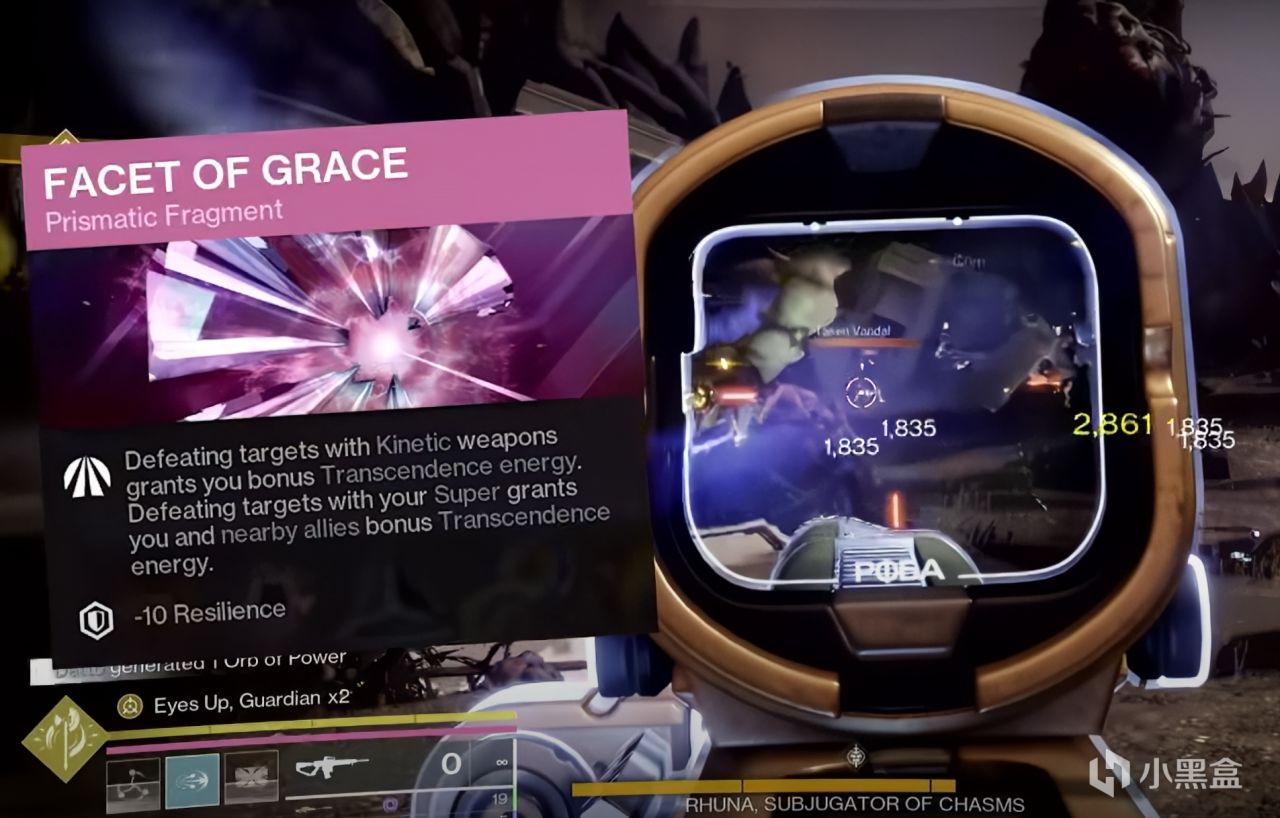 動能武器命中可以同時提高光能和暗影的超凡能量,以上兩把金槍都可以和棱鏡碎片“優雅刻面”搭配:使用動能傷害擊殺目標可以獲得額外超凡能量,使用超能擊敗目標給予你和附近盟友額外超凡能量,-10韌性