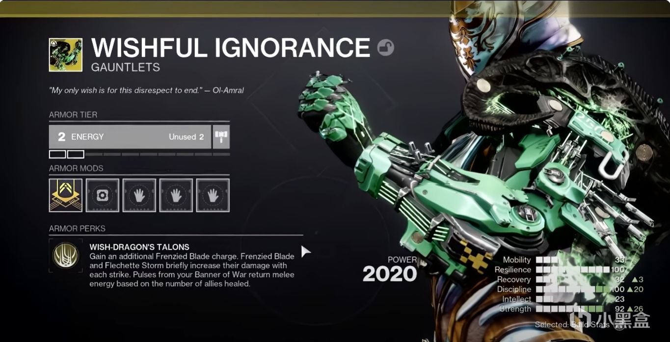 泰坦金手“許願之愚”,特殊技能“許願龍之爪”:獲得一層額外的狂暴利刃充能。連續使用狂暴利刃和鏢彈風暴,每使用一次增加下一次攻擊的傷害。戰爭旗幟的治療脈衝波,根據治療隊友的數量爲你回覆近戰技能充能