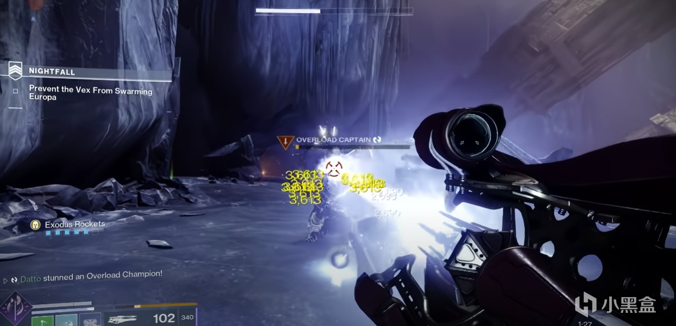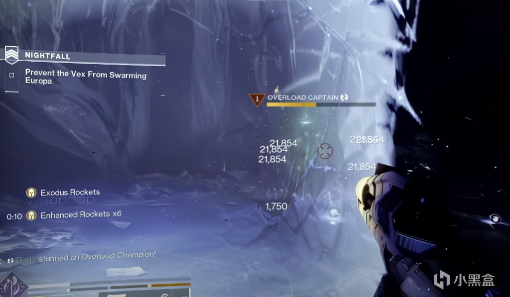 在-15光的專家級日落裏,一次6發火箭全中一個超載勇士可以打掉2/3的血。PVP中6發全中合計20+28x5=160傷害