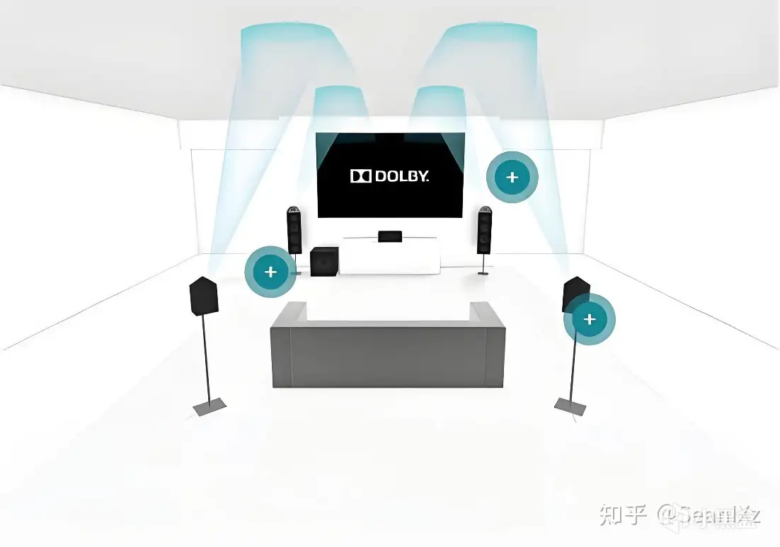 随着这些年的技术升级,如今在5.1环绕的基础上还增加了5.1.2/5.1.4的天空反射方案,通过安装更简单的反射音响来实现天空声道,增加环绕感,组建也同样简单,不需要额外埋线。