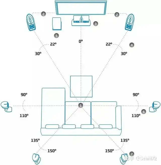 实际体验过不少,总体来说适合家庭的布局5.1和7.1是最合适的方案,选择可以根据客厅大小来选,如果客厅到电视/投影距离超过5m,可以实现7.1的中置+后置环绕方案,比较小的3-4m左右距离沙发必须贴墙,可以选择5.1方案。