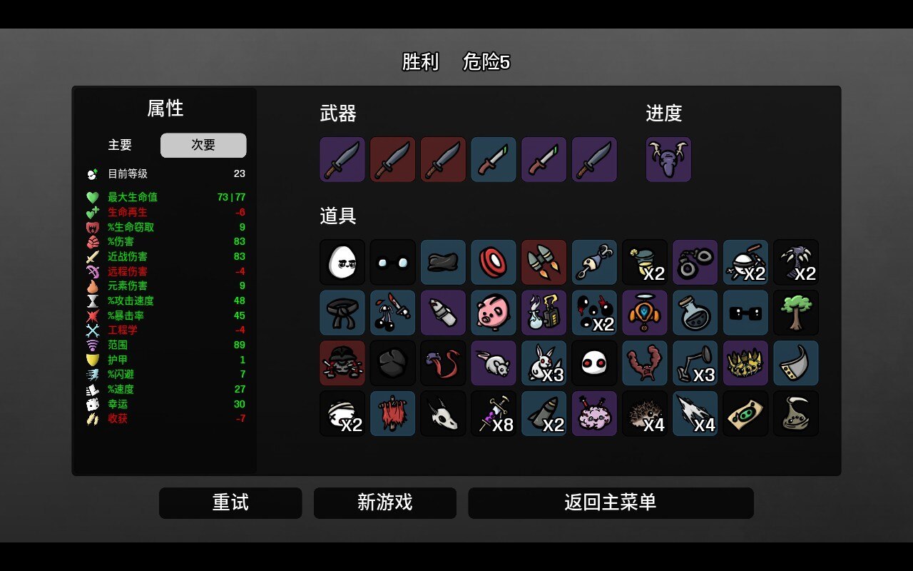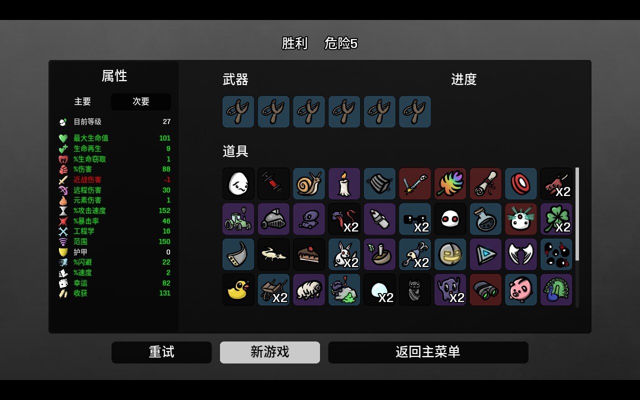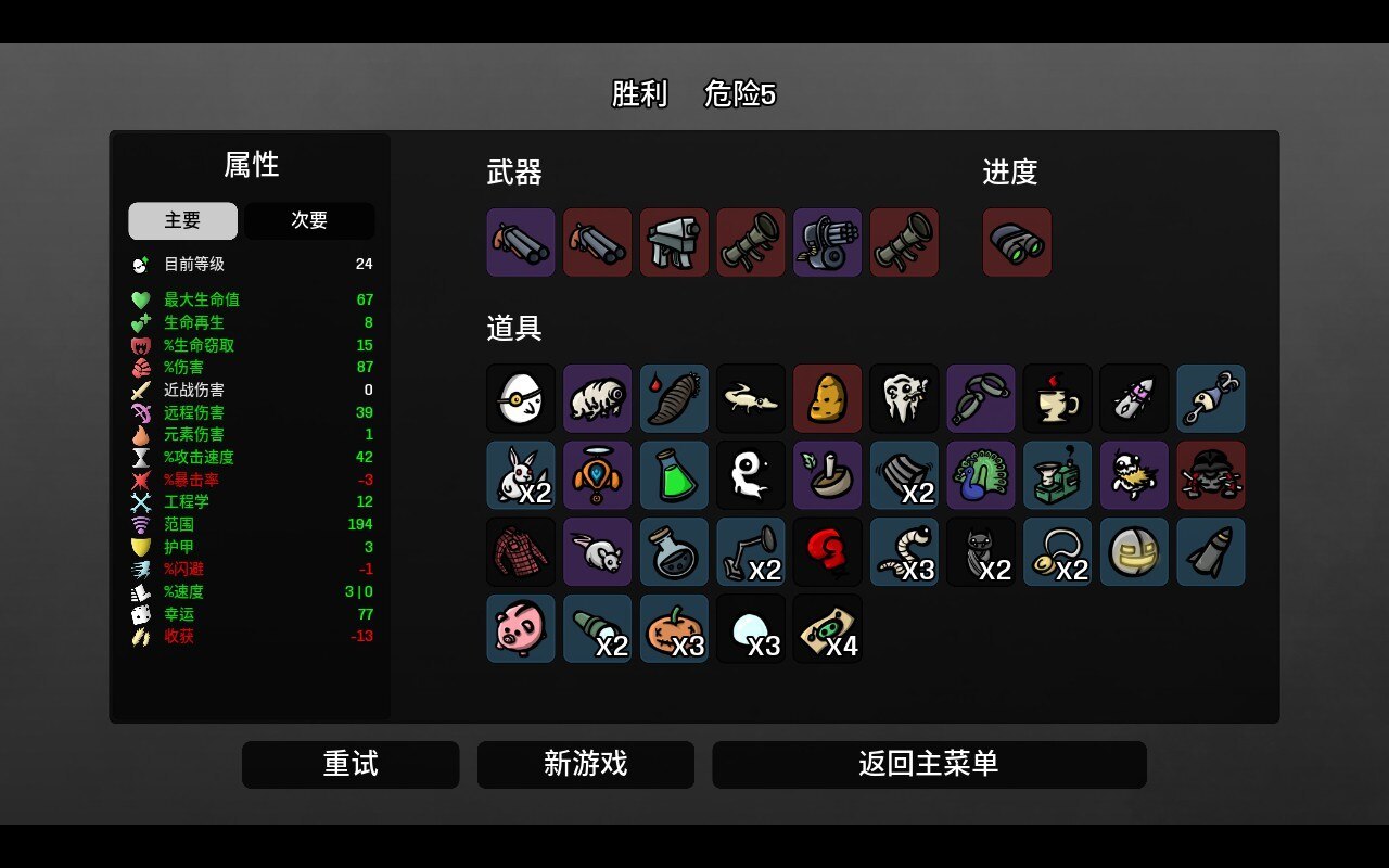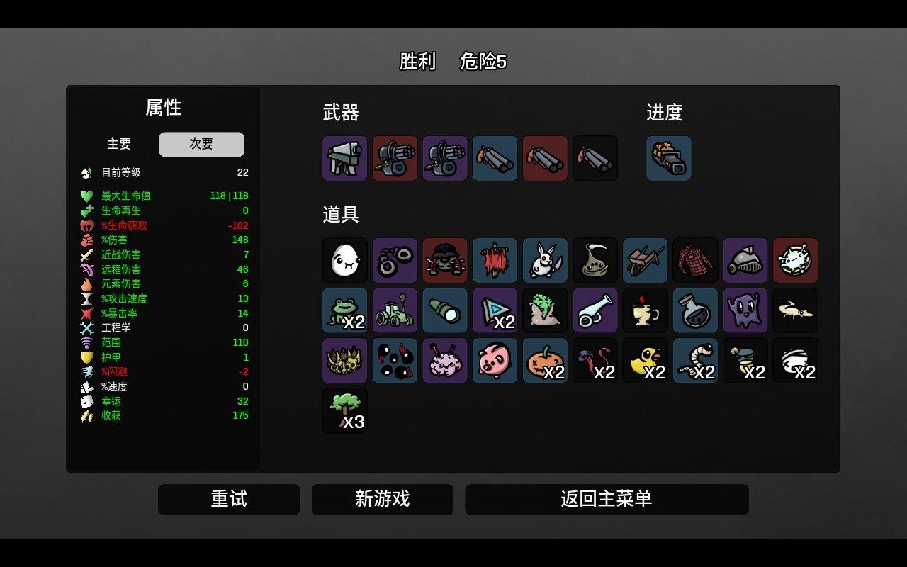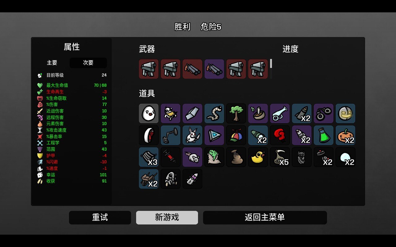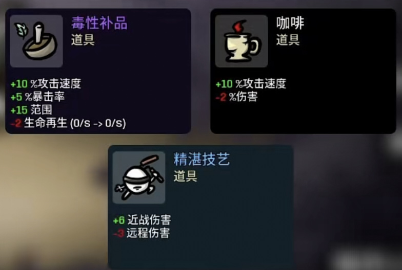 這個角色玩的就是一個雙打,加近戰和遠戰傷害的道具直接拿就行