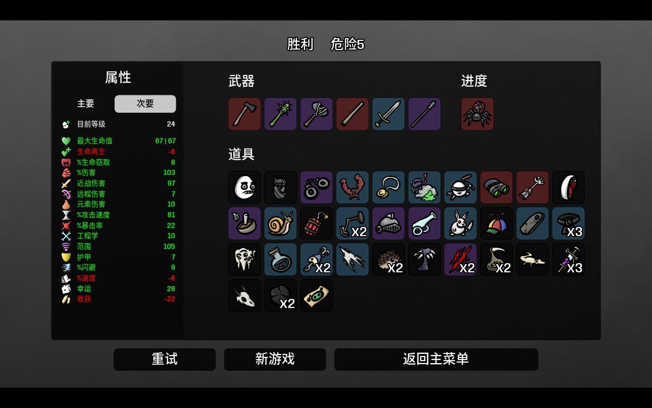 這個職業我覺得是很爽的,後來拿這個職業無盡打到過32波,無奈技術有限,但是感覺這個職業上限還是很高的,前期還是多拿武器,雖然會減傷害但是夠清怪,中期找加傷害的道具,後期亂殺