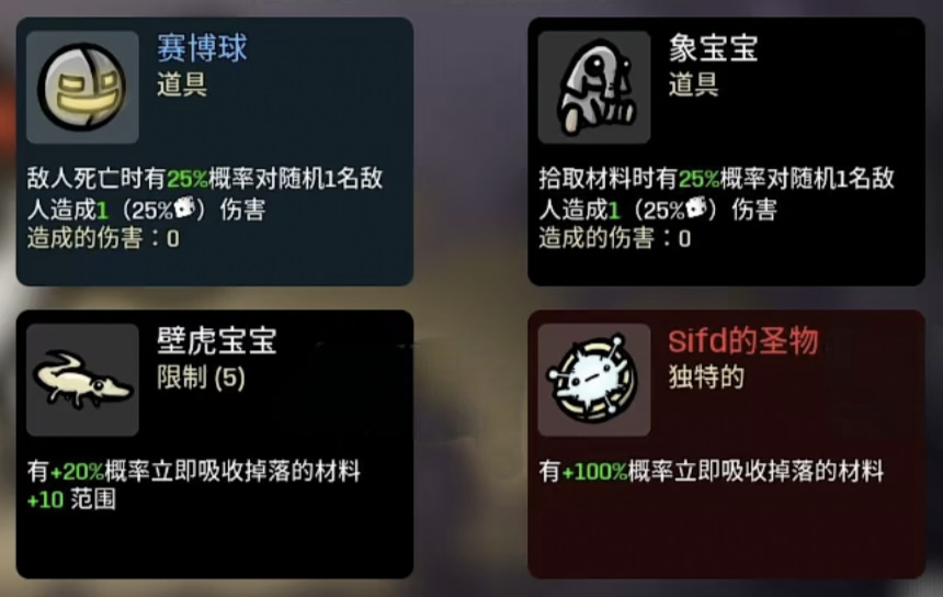 五個壁虎寶寶就相當於一個聖物了,賽博球和象寶寶都和幸運有關看到必拿,然後我自己拿的除了幸運,就是主加的工程學和生命值,然後多拿炮塔